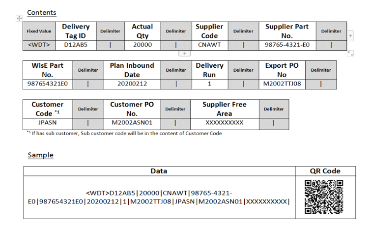 WisEかんばんのQRコードに含まれる情報