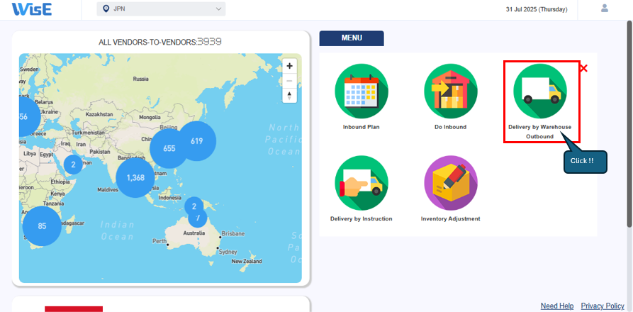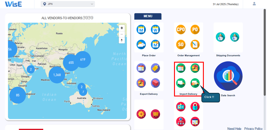 ①WisE TOP画面 > Import Delivery