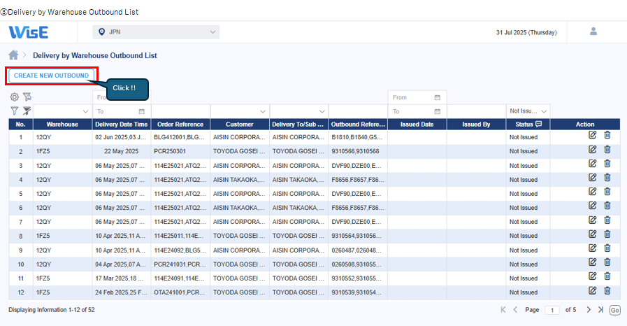 ④-5).Delivery by Warehouse Outbound List > Create Outbound