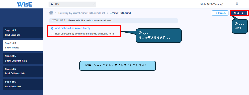 ②Delivery by Warehouse Outbound