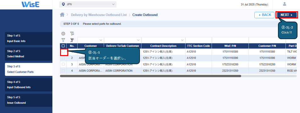 ④-2).Delivery by Warehouse Outbound List > Create Outbound