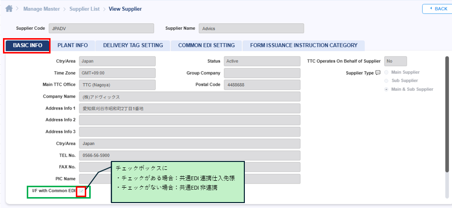 その仕入先の詳細設定欄に「共通EDI」の利用状況が表示されます。
