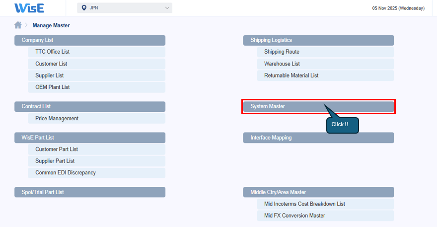 【マスタ】WisEで管理しているUOMなどの共通マスタの確認方法を教えて下さい